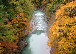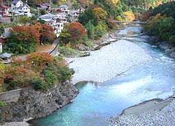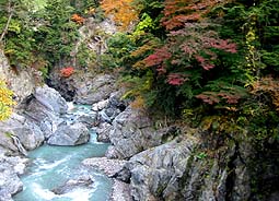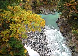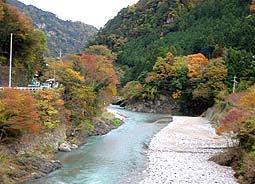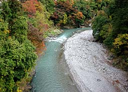 個人管理の吊り橋を除き、23本の橋を上流から順に、それぞれ上流側と下流側を撮影してあります。(撮影日:2001/11/13)