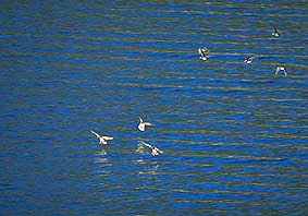 | 冬、奥多摩湖の湖面は飛来した水鳥たちで賑やかになります。 奥多摩湖に飛来する鳥の種類、頭数は年により大きな差がありますが、多くの鳥たちが飛来し、寒々とした湖面に活気をもたらすことを期待したいものです。 |