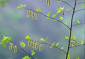 | 3月も中旬を過ぎると、渓流沿いの日当たりの良い場所では、キブシ、フサザクラ、アブラチャンが咲き出して来ます。 この頃になると、体も冬の寒さの感覚が薄れて来ます。 |