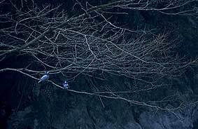 | 3月に入ると、奥多摩の渓流を象徴する鳥、ヤマセミが繁殖を前につがいで行動するようになります。 この時期、鳴き交わす声も渓流に響くこともあり、姿を捉えやすい時期となります。 |