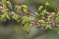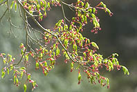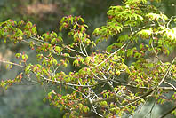 | ヤマザクラ:木によっては葉桜気味 | アブラチャン:花は終わり新葉展開 | イロハカエデ:葉が芽吹き花芽出る | イタヤカエデ:咲き始め |