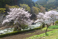 | 倉沢周辺:冬木立にヤマザクラ咲く | 日原集落周辺の日原川:冬木立 | 稲村岩周辺:冬枯れで寒々しい | 小川谷橋周辺 |