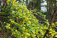 | 沢井駅近くの歩道:ヨメイヨシノ回廊 | ユキヤナギ:川縁で花は遅め | ヤマブキ:花の盛り | イロハカエデ:新葉展開、花芽出る |