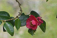 | アブラチャン:花は終盤、新葉芽吹く | ヤブツバキ:花は遅め | ミツバツツジ:岩場で花の盛り | ヤマブキ:花の盛り |