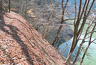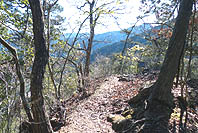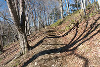 天候:晴 地面は全域で乾燥し多くが落ち葉溜り。カラカラに乾いた落ち葉の上の急斜面は滑りやすく歩きにくい。道も不明瞭。