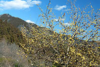 天候:晴 寒い日が続き、大加集落周辺の雪はごく部分斑ではあるが、ごく微かに残る。大加集落周辺のロウバイは花盛りの感じ。