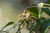 | 赤ぼっこから見る奥多摩の山並み:左端大岳山、その右手のとがった山は鋸山、その右は日の出山、右端川苔山 | アセビ:まだ蕾は硬そう | ||