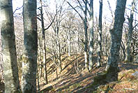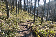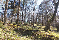 | 柳沢峠登山口周辺:林下は笹が残る | ナラ坂分岐:ミズナラはまだ緑優勢 | 花ノ木尾根:笹の無いところは樹影 | 六本木峠周辺の梅ノ木尾根 |