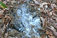 | 展望台:奥秩父の山並みを一望 | ブナ坂周辺のブナ林 | 日陰の道:霜柱が立ち地面ザグザグ | 霜柱:日陰斜面のアチコチで立つ |