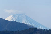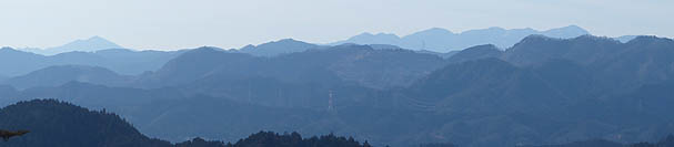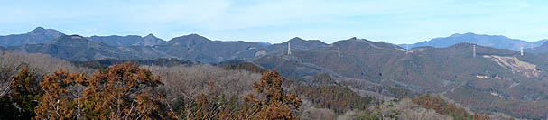| 伐採地から見る山並み:最奥左端が大山、右に続く山並みが丹沢主稜線:空気はやや霞んでいる | 伐採地から見る富士山 | ||