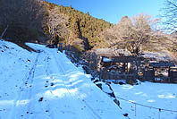 | 集落間の小径:地面は乾く | 日陰の小径(本日):残雪は融けない | 1週前(01/26):残雪は部分的微か | 2週前(01/19):残雪は部分的僅か |