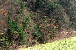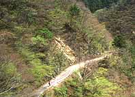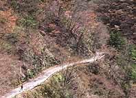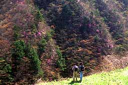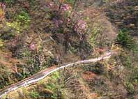 ミツバツツジは、奥多摩の渓谷に春を告げる花で、地元では「1番ツツジ」と呼び親しまれている。画目ではわかりにくいが、このツツジは1年ないし2年おきに花の多い年と少ない年を繰り返す。最近は1995、1997、2000年が花の咲きが良かった。また、1996年は木々の芽吹きが随分と遅かった。