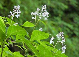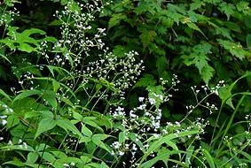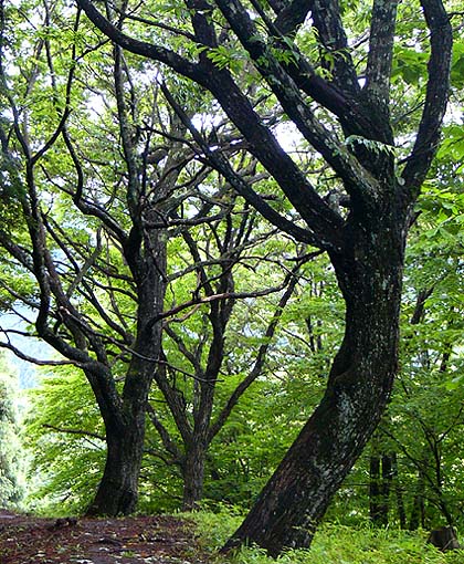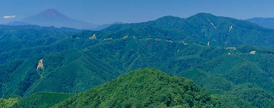 | 三頭山から惣岳山、小河内峠を経て奥多摩周遊道路・月夜見駐車場へと伸びる尾根通しの道は、森林あり、防火帯あり、岩の露頭の展望ありと変化に富むルート。 かつて奥多摩で夏のお花畑と言えば、雲取山周辺の防火帯を指したが、鹿に食害等の影響でここ10年くらい多摩川北岸の山々は急速に種類は減少、雲取山周辺でもマルバダケブキに単一化されてしまった。 今、花の種類でいえばこの防火帯を始め多摩川南岸の山々の方が豊かで、夏場を中心に多く見られる。天候に恵まれなくとも、それなりの楽しみ方が出来る尾根。 |