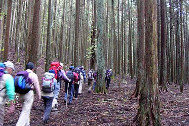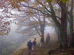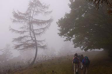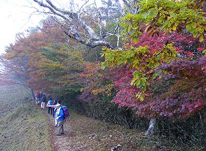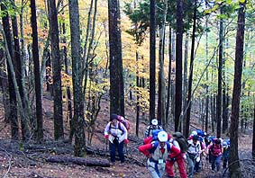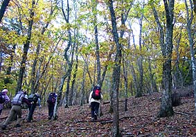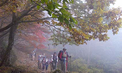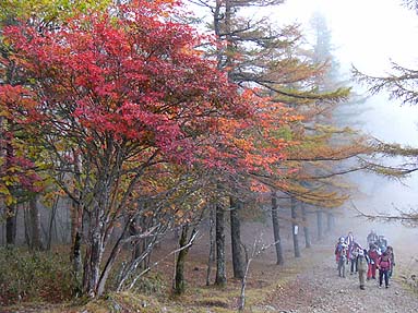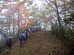 | アカザス尾根-雲取山 - 雲取山登山教室の同行記録 - [歩行記録 : 2003年10月16日] [天候 : 曇・稜線は霧] |