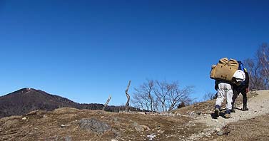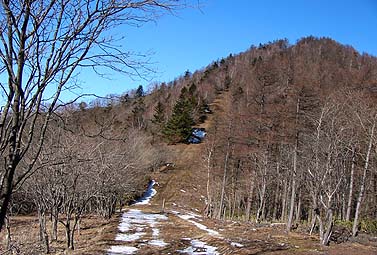 日陰名栗峰-高丸山の鞍部(右は高丸山・直前は急登) |