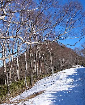 鷹ノ巣山への途中にあるダケカンバ疎林 |