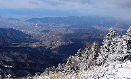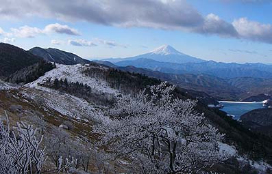 主稜線・標高2000m地点付近から見る富士山と日川ダム