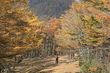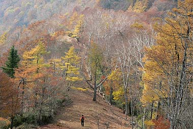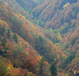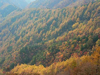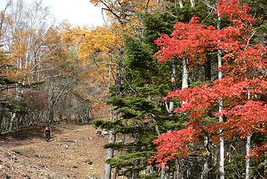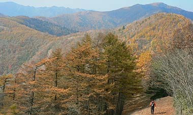 縦走路の紅葉も見物だが、展望のきく尾根から見る周辺や谷筋の紅葉も捨てがたい