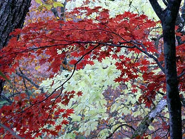 紅葉の紅白(白はコシアブラ)