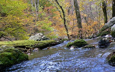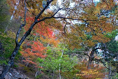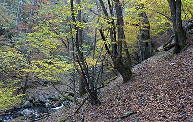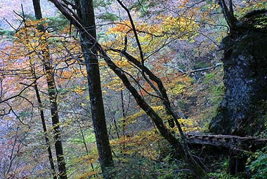 ここの自然はいつ訪れても素晴らしいが、中でも新緑や紅葉の時期の谷筋は何とも魅力だ