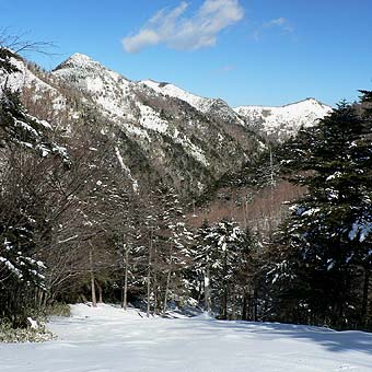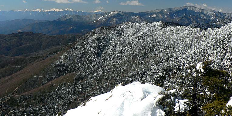 奥秩父山域随一の展望の岩峰と、防火帯の縦走路のスノーハイク