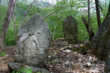 歩道の片方の起点:山のふるさと村園内の尾根にある石仏 |