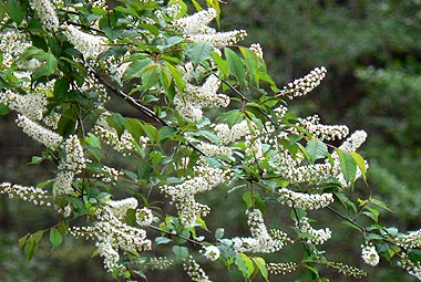 数は少ないが歩道沿いでウワミズザクラの花が見られた |