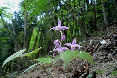 林床に咲くイカリソウ |