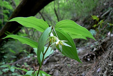 チゴユリは歩道脇で点々と見られた |