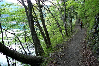 湖面に沿い平坦な道が多く、落葉広葉樹林帯の中を行く箇所が多いが時には湖面が開ける。新緑や紅葉の時期は特に楽しい道となりそうだ。