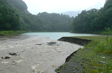 湖面に流れ込む濁流 |