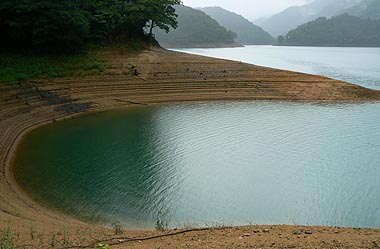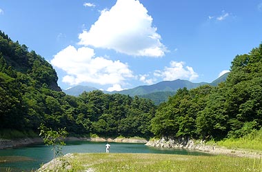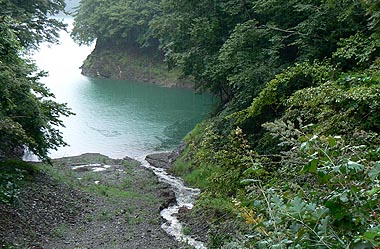 普段は枯れ沢からも水が湖面に流れ込む |