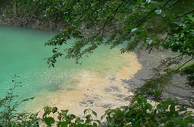 歩道の片方の起点:山のふるさと村入り口付近の湖畔の入り江 |