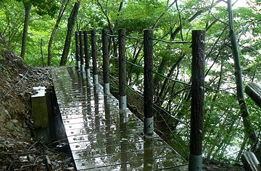 奥多摩湖南岸歩道 (山のふるさと村-ダムサイド) -台風[9号]接近中の遊歩道- (2007.09.06)