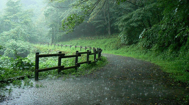 :時折たたき付けるような雨となった |
