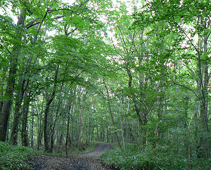 松姫峠付近の林道:樹林帯の中