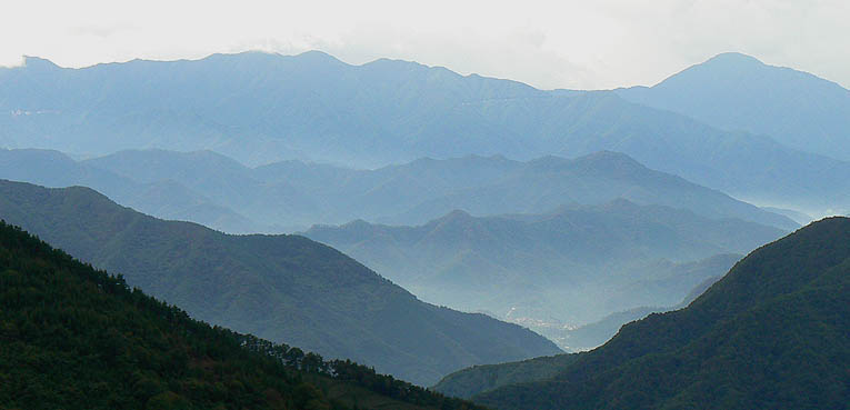 林道から見る山並み(右奥は雁腹摺山)