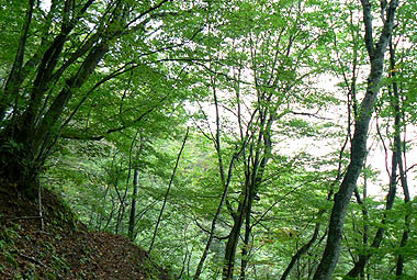 松姫峠から奈良倉山へのコースは南面が林道、北面はブナを主体とした落葉広葉樹林帯となっている。