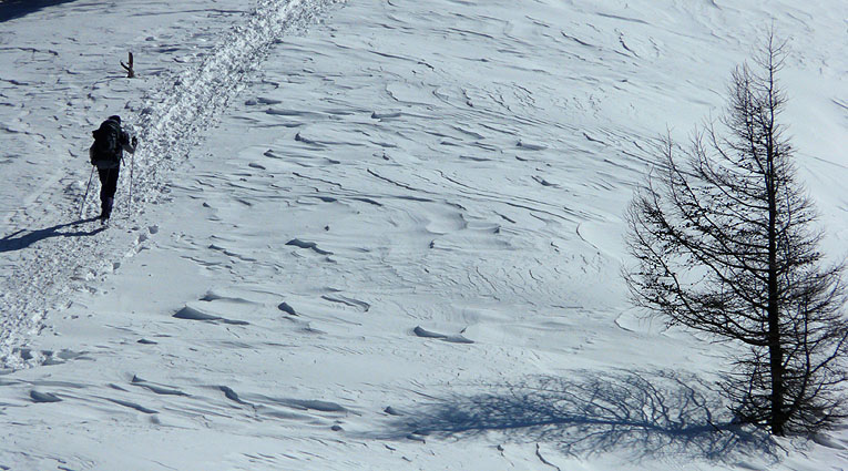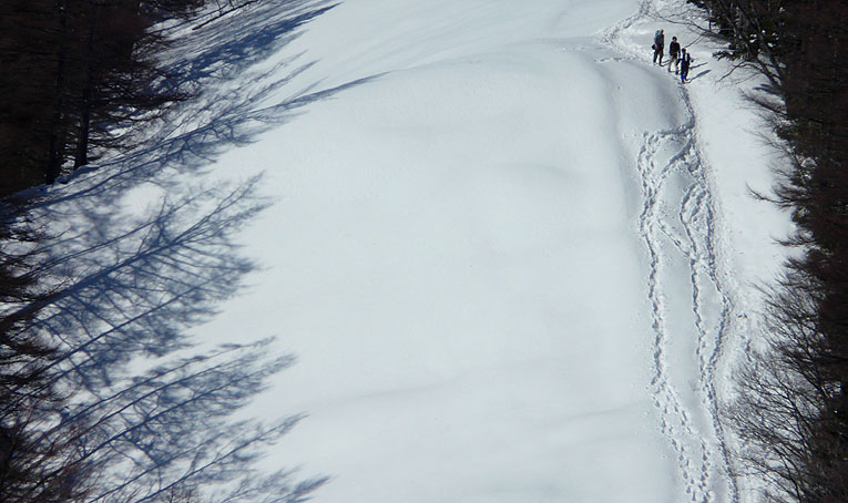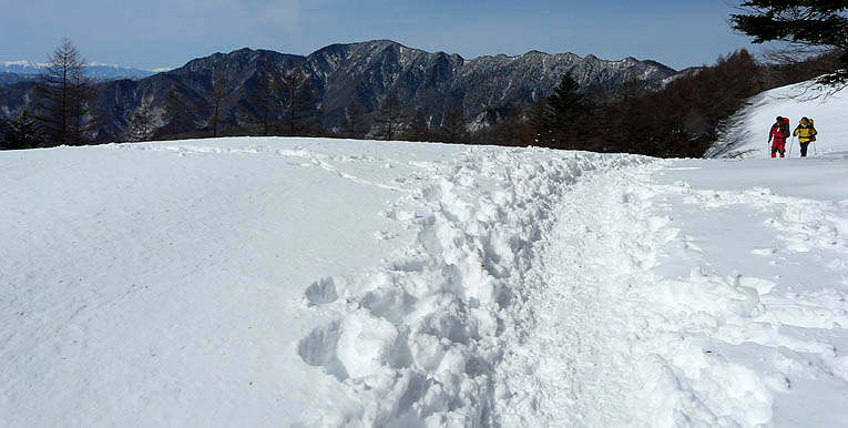 さすがに石尾根、度々の降雪にかかわらず、翌々日にはきれいなトレースがついていた。