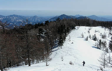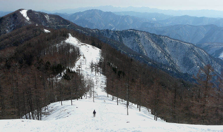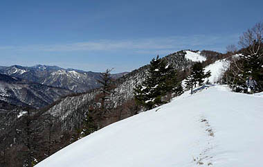 ヨモギの頭から見る七ツ石山へと続く防火帯の尾根