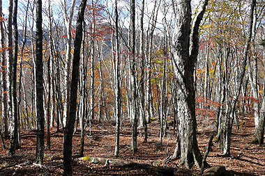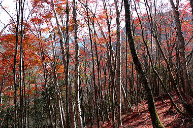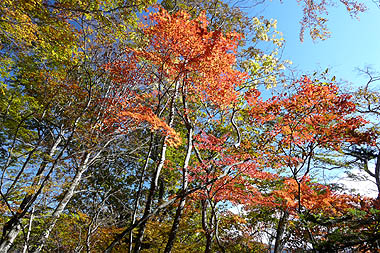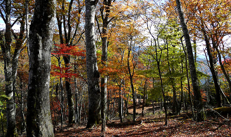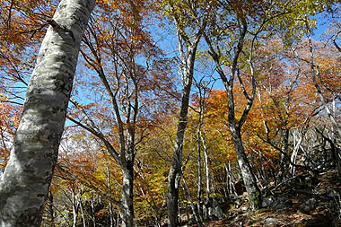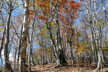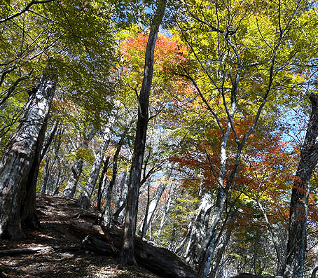 -錦秋の自然林の尾根を行く-