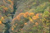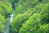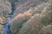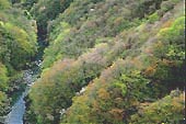 [位置 : 小河内ダム堰堤から下流を見る。]