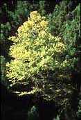 3月末から4月初めにかけ、真っ赤な花をつけ、花の後芽吹いてくる。11月初め見事に黄葉する。