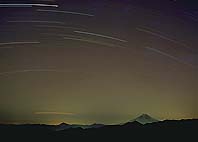 また、今回は明るい流星が多く飛んだのも印象的でした。HPではわかりにくいのですが、右上のコマには詳細にネガを調べると30を越える流星が写っています。(どんなに甘く見ても流星が写真に写るのは、眼で見えたうちの5個に1個程度ですので)