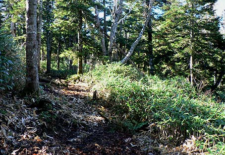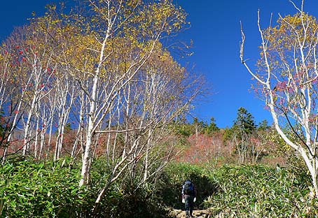 鳩待峠から入る (峠周辺はダケカンバが多い) |