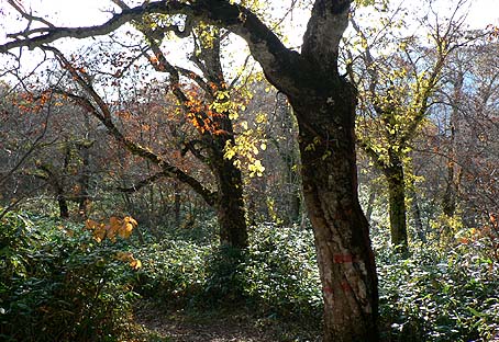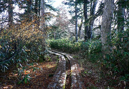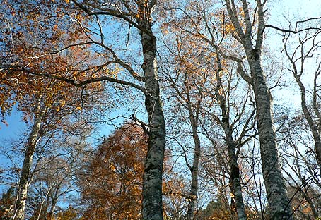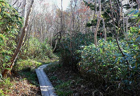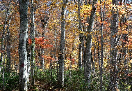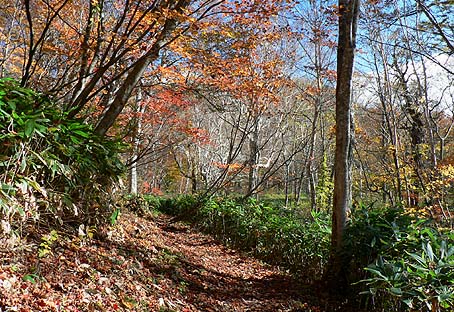 新道下部はブナ林が広がる (ここも紅葉の中を行く) |