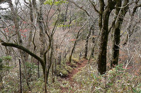 下部は植林帯の急坂を下る (植林帯は長い) |
