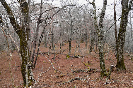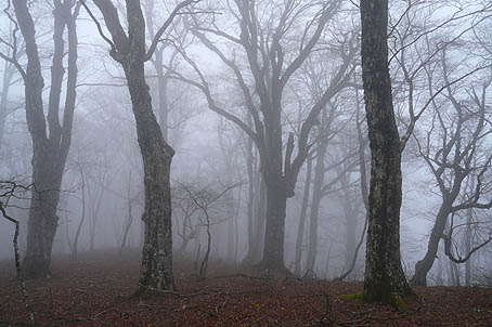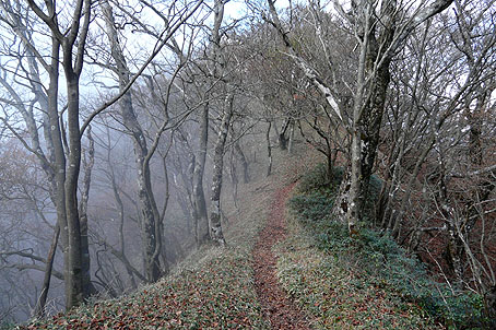 霧のブナ林 (下るうち霧がでてきた) |