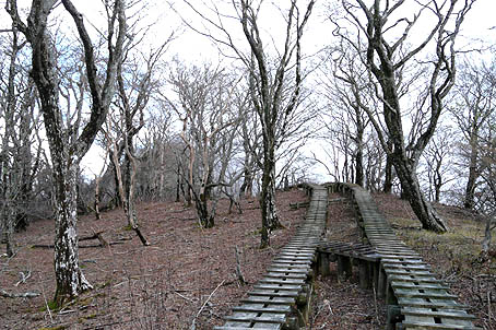 大室山手前には木道の箇所がある (周囲のブナ林は完全に落葉) |