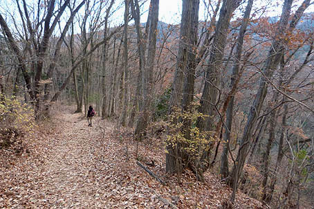 小仏登山道中腹の広葉樹林帯 コナラはまだ葉を落としきっていない) |